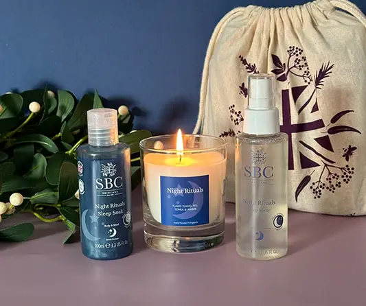 The SBC Night Rituals Candle exudes a calming elegance, the label is minimalist yet refined, featuring soft lavender accents and delicate typography that highlight its soothing blend of Lavender, Tonka & Vetiver. A subtle tagline, “Soothe your senses,” adds a gentle invitation to unwind. Whether lit or displayed, it’s a stylish addition to any night time ritual, radiating spa-like serenity and understated luxury.